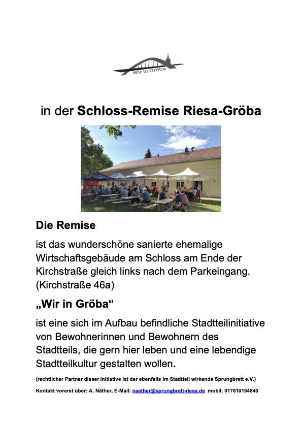 - wird für Veranstaltungen des Sprungbrett e.V. genutzt, sowie vermietet